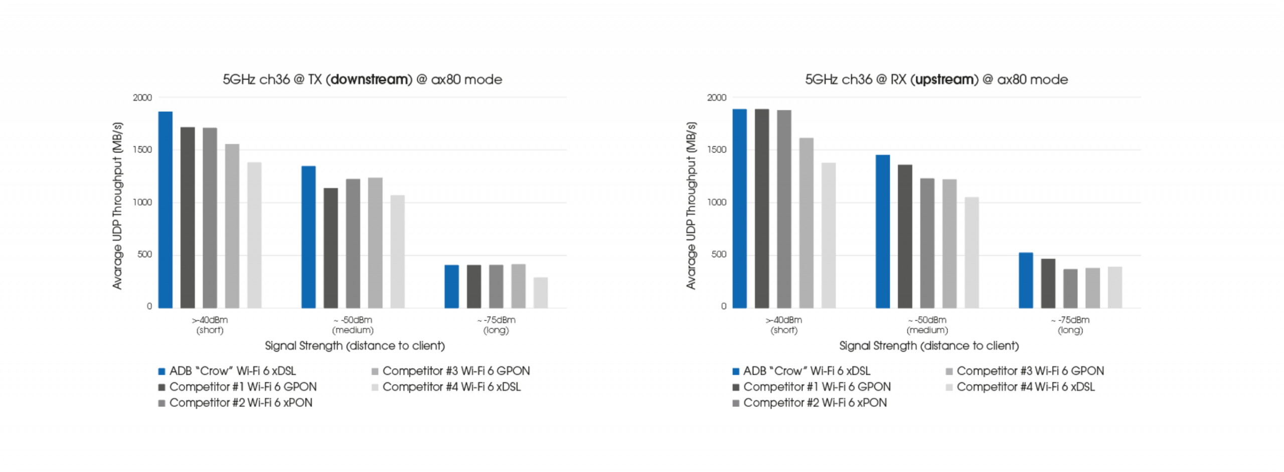 ADB engineering team has developed two independent Wi-Fi OTA performance testbeds. This advanced equipment allows to evaluate the maximum throughput at different ranges and angles. It gives reproducible and comparable results